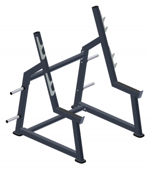 Стойка для приседаний предназначена для тренировки четырехглавой мышцы бедра, позволяет прорабатывать трапециевидную мышцу. Тренажер оснащен амортизирующими подпятниками, не требующими крепления к полу и дополнительными штырями из нержавеющей стали для хранения дисков.