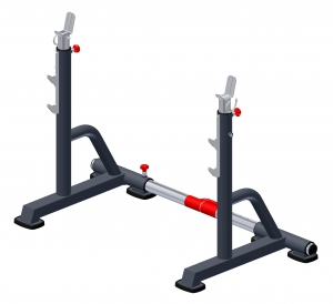 Универсальные стойки для приседаний со штангой, которые также позволяют выполнять жимы штанги. Регулировка осуществляется при помощи телескопических направляющих из нержавеющей стали. Плавность регулировок достигается за счет применения втулок, изготовленных из сверх прочного пластика. Тренажер оснащен амортизирующими подпятниками, не требующими крепления к полу.